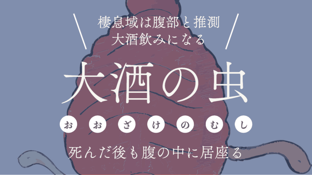 取り憑かれると大酒飲みになる虫です。年末年始は特に元気に活動しそうな虫。腹部に棲息しますが、とりつかれた人が死亡しても腹の中に居座り続けます。赤土のような砂利の身体の内部は虫どもがたくさん住み着いています。