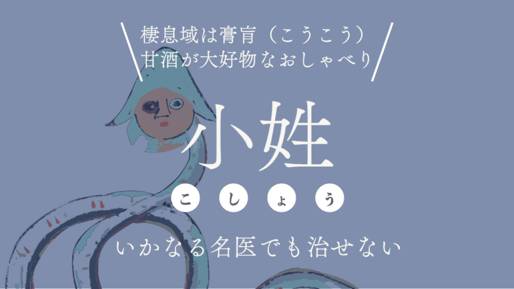 この虫に取り憑かれると手の打ちようがありません。不治の病になります。「病膏肓に入る」と言われ、名医でも手の施しようがない、の語源の中国故事から生まれた虫ですが、その症状は「ペチャクチャおしゃべりになる」。井戸端会議のような場で多数見られそう…?小姓とは「子供」の意味で、甘酒が大好物になります。