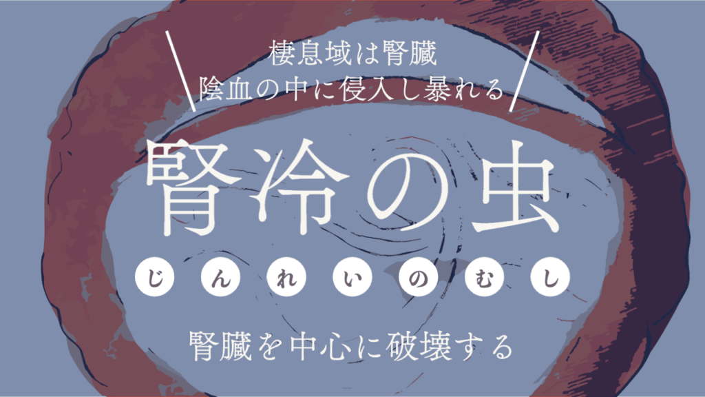 腎臓に棲む虫です。長い虫短い虫が陰血(生殖器に関わる血)の中に侵入、暴挙。体力を消耗すると腎臓を中心に破壊活動を起こします。「腎冷」という病気で取り憑かれると人は死んでしまいます。