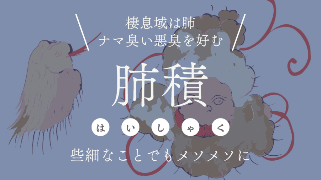 肺に棲んでいる、岩石に似た虫。幼虫と成虫がいます。臭覚が鋭く水分を吸って固まります。呼吸困難や咳、喘息などを引き起こします。クヨクヨ悲観的にもなります。別名「息賁(そくほん)」とも言います。